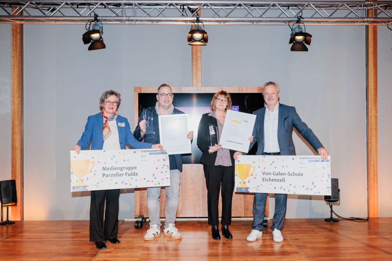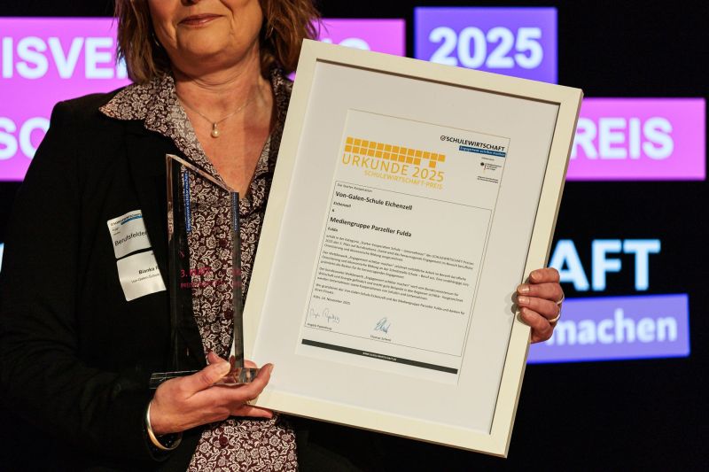 Die Mediengruppe Parzeller und die Von-Galen-Schule Eichenzell gehören zu den Bundessiegern des SCHULEWIRTSCHAFT-Preises 2025. Projektleiter Mirko Luis und Schulleiterin Bianka Roth nahmen die Auszeichnung am 14. November 2025 in Berlin entgegen.