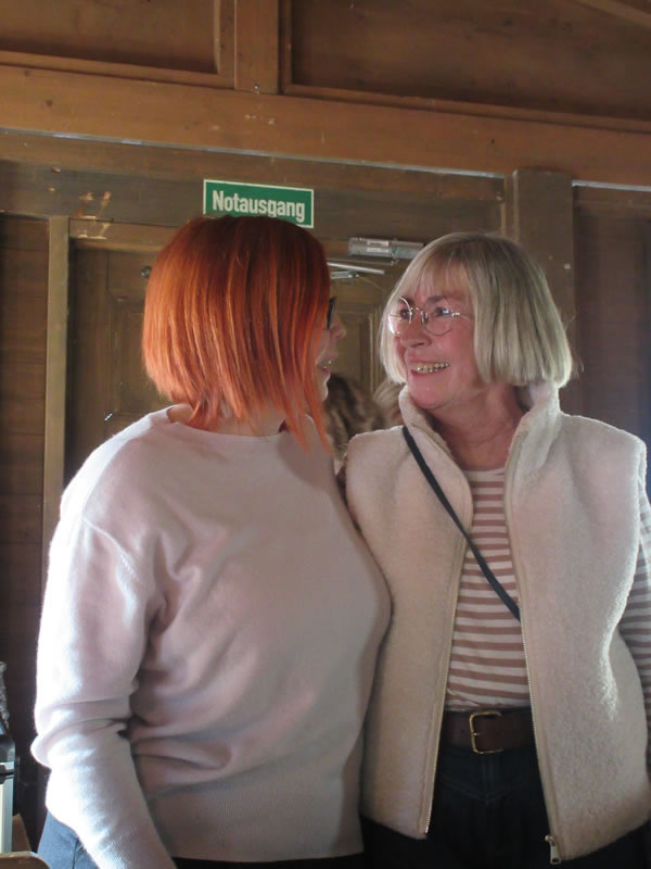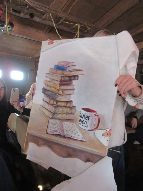 Auch die Tischnachbarinnen der neuen Pensionärin überreichten ein Geschenk: ein von Kunstlehrerin Natalie Gal gemaltes Bild sowie einen Stick mit einem Video, das Lada Turovsky zusammengestellt hatte. Neben guten Wünschen von Lehrkräften und der Klasse H9, deren Klassenlehrerin Bettina Faber-Ruffing bis zum Sommer 2025 war, wurden zahlreiche Eigenschaften genannt, die man mit ihr verband, und darüber nachgedacht, wie viele Schülerinnen und Schüler sie im Laufe der Jahre wohl unterrichtet haben könnte.