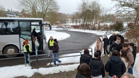 Elf neue Schulbuslotsen kann die Von-Galen-Schule begrüßen, sie verstärken die Mannschaft der bisherigen Schulbuslotsen und haben zukünftig ein wachsames Auge auf das Ein- und Aussteigen, das Anstehen an der Haltestelle sowie während der Schulbusfahrten. Die Schülerinnen und Schüler unserer Klassen H8, R8 und R9a sowie auch zehn Schüler der Rhönschule Gersfeld haben Anfang Februar 2026 die Ausbildung mit Lioba Mihm und Tim Wiegand vom Polizeipräsidium Osthessen, unterstützt durch Schulbuslotsenkoordinator Sebastian Albrecht, erfolgreich bestanden.