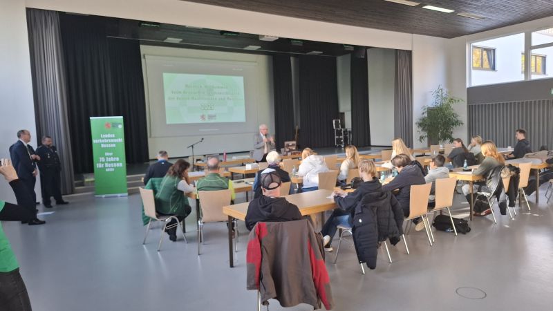 Erfolgreich waren die Schülerinnen bei einem Wissenstest zu Verkehr und Buslotsendienst sowie bei einem Geschicklichkeitsspiel im Team. Auch ein wirklichkeitsnahes Rollenspiel im und am Schulbus wurde absolviert. Anschließend installierte die Polizei ein echtes Blitzgerät am Straßenrand, woraufhin die Schülerinnen und Schüler aus ganz Hessen die von den Fahrzeugen gefahrenen Geschwindigkeiten schätzten und einiges über den Sinn von innerörtlichen Tempolimits erfuhren.