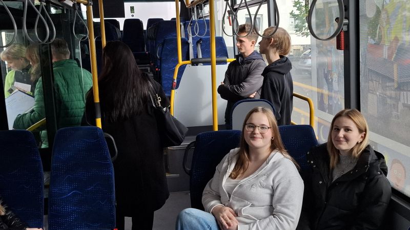 Los ging es zum hessischen Landeswettbewerb der Schulbuslotsen nach Ranstadt! Ja, so etwas gibt es, ausgerichtet von der Landesverkehrswacht Hessen. Mit Leni Bajunovic und Kira Nahrgang aus der Klasse R10b durften zwei Buslotsinnen der Von-Galen-Schule daran teilnehmen. Gemeinsam mit weiteren Schulbuslotsen aus dem Landkreis Fulda machten sich die beiden zusammen mit ihrem Lehrer, Sebastian Albrecht, auf in die Wetterau.