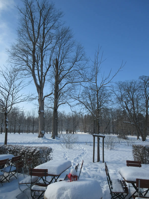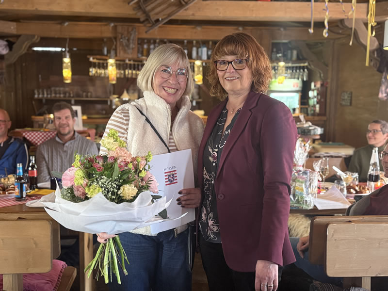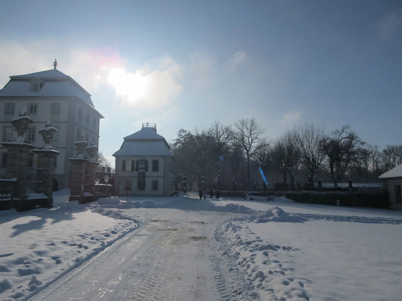 Schöner hätte die Kulisse für die Abschiedsfeier von Bettina Faber-Ruffing kaum sein können: Für ihre Feierstunde hatte sie die Schlosshütten-Alm am Postenhaus des Schlosses Fasanerie in Eichenzell gewählt, begleitet von strahlendem Sonnenschein und blauem Himmel, die den verschneiten Schlosspark in ein Winter Wonderland verwandelten.