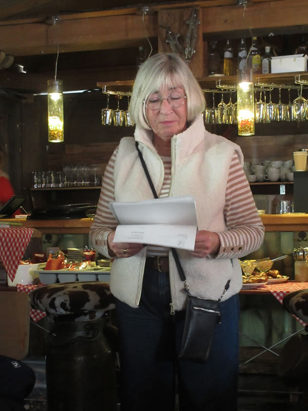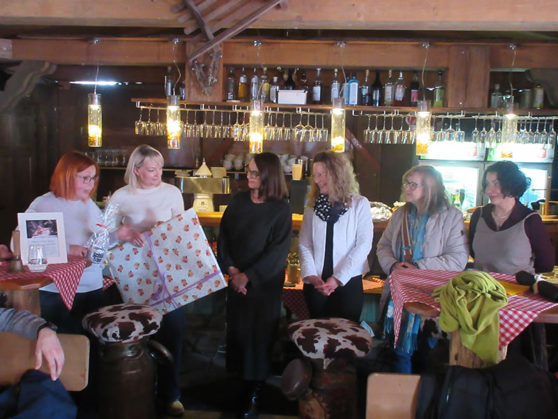 In humorvoller Art und verpackt in die Phasen einer Unterrichtsstunde, beginnend mit der Schulglocke ihres Vaters und einem stummen Impuls, blickte Bettina Faber-Ruffing auf ihre Dienstzeit zurück. So erinnere sie sich beispielsweise gerne an Lesenächte in der Schule, an das Theaterstück, das sie mit ihren Schülerinnen und Schülern zum 25-jährigen Jubiläum der Schule aufführte und an einen Sponsorenlauf für ein Wasserprojekt in Nigeria, aber auch an die schönen Klassenfahrten, Schüleraustausche und an die vielen Fahrten, die sie zusammen mit ihren Kolleginnen unternommen habe. Dazu gehörten nicht nur acht deutsche Ziele, sondern auch St. Petersburg, Madrid, Sevilla und Istanbul. Darüber hinaus habe sie viele pädagogische Reformen erlebt, aber auch, wie man sie wieder abschaffte. Zum Schluss fragte sie die Anwesenden noch nach Tipps, was sie nun in ihrem Ruhestand alles tun könne und beendete ihre „Unterrichtsstunde“ augenzwinkernd mit dem Stellen der Hausaufgabe.