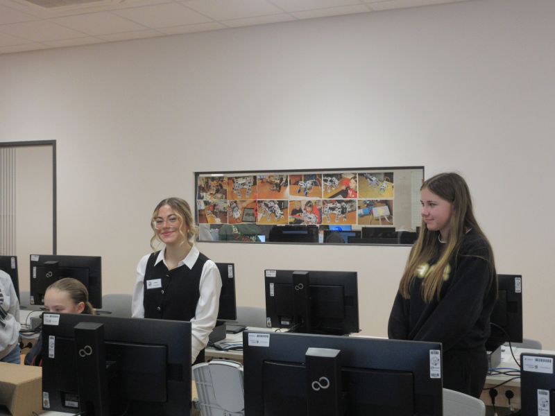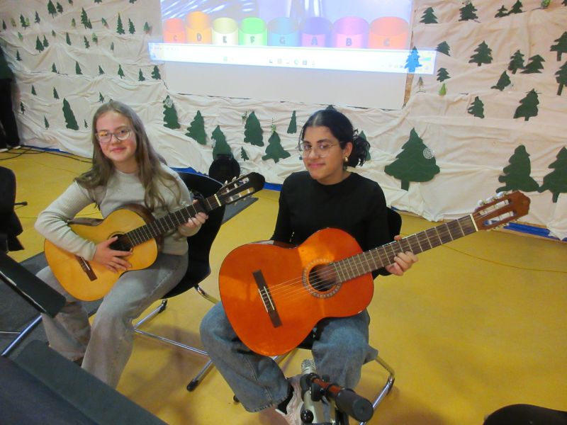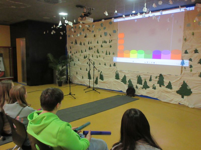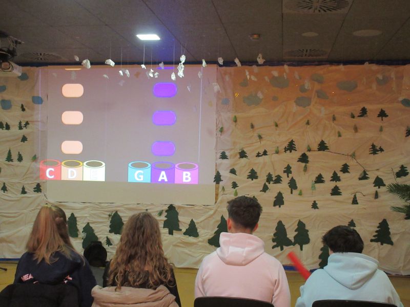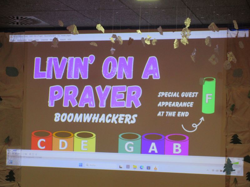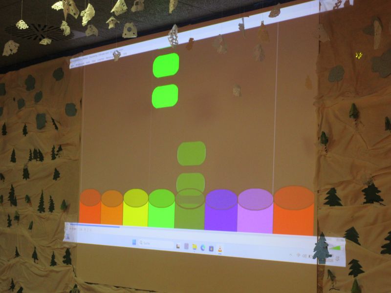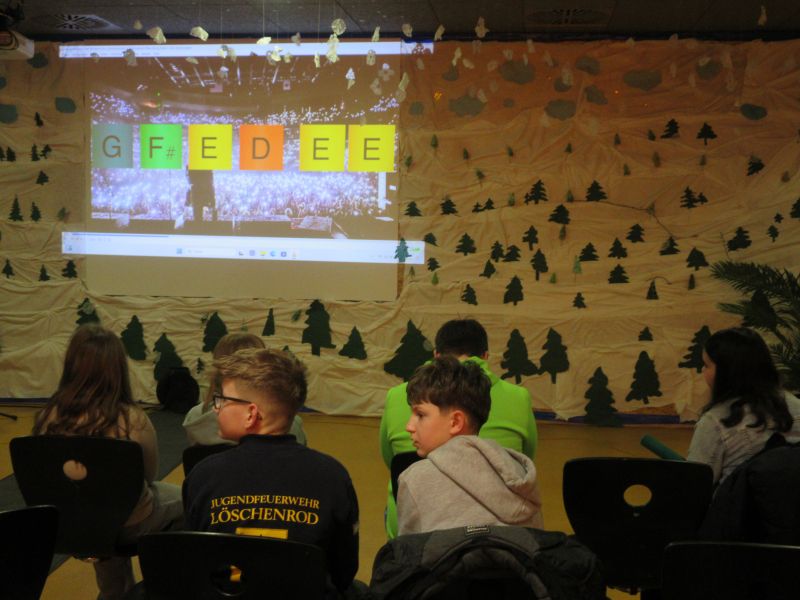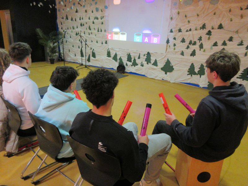 Auch in der Kreissporthalle warteten verschiedene Mitmachaktionen auf die jungen Besucher. Großen Anklang fanden außerdem die musikalischen Darbietungen der Gitarren-AG unter der Leitung von Peter Schmuck sowie die beiden Boomwhacker-Aufführungen der Klassen H6 und H8 unter Leitung von Constantin Kuhn. Besonders spannend für die jungen Gäste waren zudem die Ergebnisse der AG LEGO-Robotic sowie die moderne IT-Ausstattung der Schule.