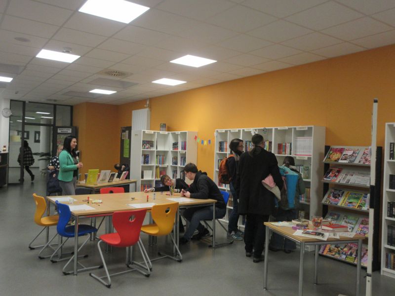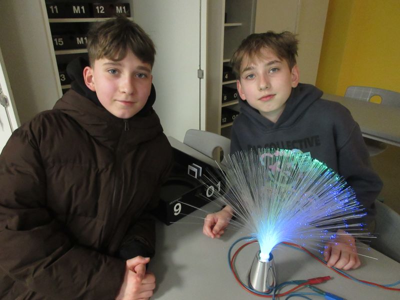 In zahlreichen Klassen- und Fachräumen informierten sich die Gäste über das vielfältige schulische Angebot. Dabei gab es viel zu entdecken – und auch selbst auszuprobieren. In den Kunsträumen wurde eine Bastelaktion angeboten, begleitet von einer großen und abwechslungsreichen Kunstausstellung. Der Werkraum lud zu einer Mitmachwerkstatt ein, und unter Anleitung der beiden Leiter der AG Elektrotechnik konnten die Besucher die Welt des Lötens kennenlernen und ein „Licht zum Mitnehmen“ herstellen. In der Mediathek wurden nicht nur Lesezeichen gebastelt, sondern auch passend zu Büchern gestaltete kleine Kästen ausgestellt. Zudem konnten die Gäste eine bunte Bandbreite an Kinder- und Jugendliteratur entdecken.